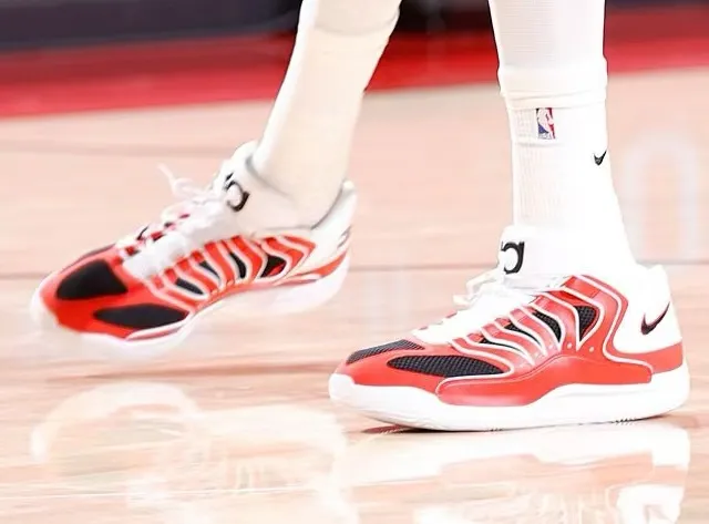 比赛中,杜兰特上脚长岛路德高中配色Nike KD18"LuHi"PE。